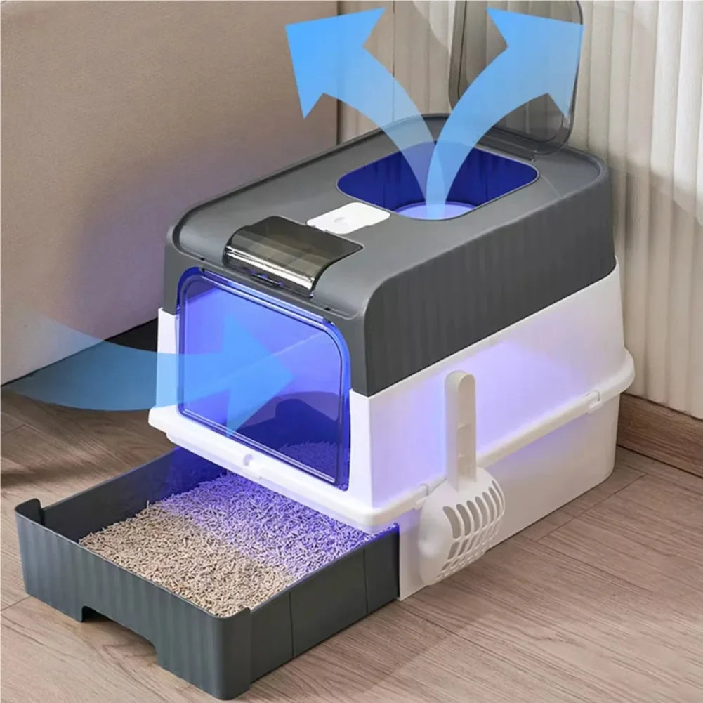 La partie supérieure se soulève facilement pour le ramassage quotidien, et l’ensemble peut être essuyé ou lavé avec un détergent doux. Les couleurs sobres et la forme minimaliste permettent à la litière de s’intégrer harmonieusement dans n’importe quelle pièce — salle de bain, buanderie ou espace dédié aux animaux. Idéale pour les foyers avec plusieurs chats ou pour les propriétaires recherchant une solution propre et sans odeurs, cette litière fermée allie fonctionnalité et esthétique, contribuant à maintenir un environnement agréable et ordonné pour vous et votre compagnon félin.