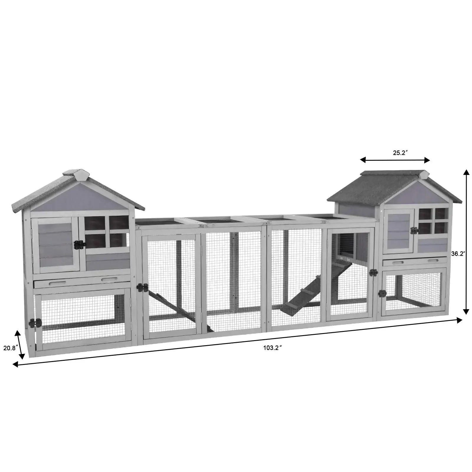 Son design modulaire permet de déplacer facilement la cage du salon à un coin ombragé du jardin. De grandes portes offrent un accès pratique pour interagir avec votre lapin, nettoyer l’habitat ou ajouter des jouets et cachettes. La ventilation est optimisée grâce à des panneaux grillagés judicieusement placés, et les couleurs neutres permettent à la cage de s’intégrer naturellement dans n’importe quel environnement. Que vous gardiez votre lapin à l’intérieur durant l’hiver ou que vous lui permettiez de profiter de l’air frais en extérieur pendant les beaux jours, cette cage offre flexibilité, confort et tranquillité d’esprit, assurant à votre compagnon un cadre de vie sain et agréable en toutes circonstances.