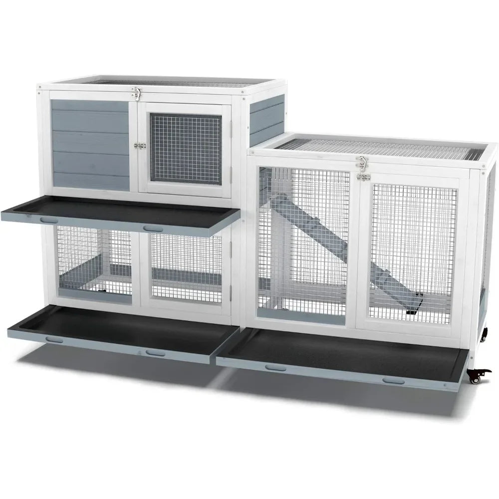 Conçu pour le bien-être de votre compagnon, le clapier est facile à nettoyer grâce à ses plateaux amovibles et à ses larges ouvertures. Sa construction robuste et ses matériaux non toxiques garantissent durabilité et sécurité, tandis que la base surélevée protège l’intérieur de l’humidité et du froid. Des éléments supplémentaires tels que des râteliers à foin, des supports pour gamelles ou des crochets pour jouets ajoutent confort et enrichissement au quotidien. Placé en intérieur ou sous un abri extérieur, ce clapier à deux étages offre un habitat sécurisé, confortable et stylé, qui soutient les comportements naturels de votre lapin et améliore sa qualité de vie.